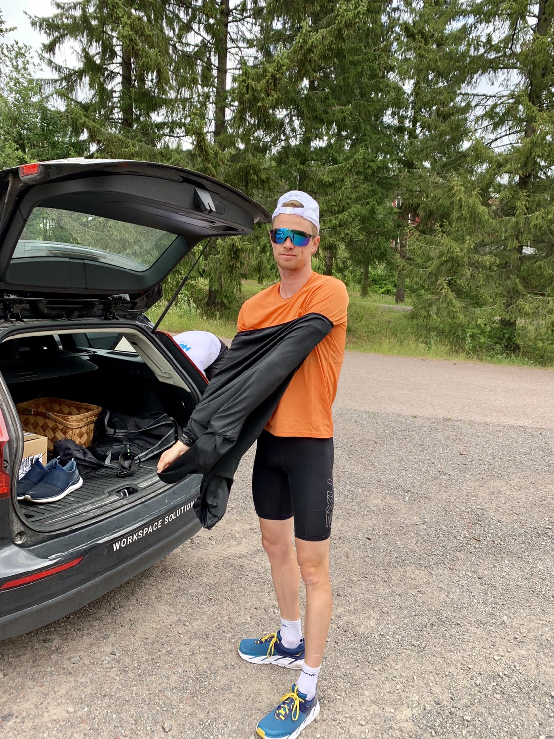 Klockan 09,00 i förmiddags mötte jag upp Simon Andersson och Johannes Hases i Bergebo. Simon ser väldigt peppad ut. Enligt rykten ska han ha tränat 20 timmar de senaste fyra dagarna, men det är nog endast rykten skulle jag tro.. Själv har jag nu smackat in precis 9 timmar träning på fyra dagar..