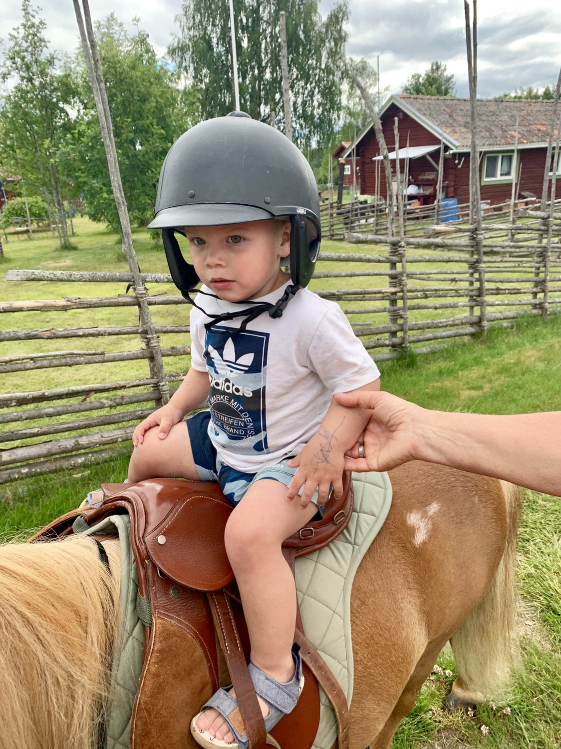 Vid stugan hade vi en mysig eftermiddag. Bland annat så fick Alfons prova att rida på en ponny, vilket med största sannolikhet var månadens höjdpunkt! Alfons var inte det minsta rädd för hästen Jasper, han var bara glad hela tiden. Det var skoj att se! Annars brukar han vara lite smårädd och reserverad för diverse motorfordon, men djur verkar han gilla! Amanda har börjat prata om att köpa en häst nu också, aj aj aj... Det ska jag dock försöka förhindra så gott jag bara kan, för hade man inte saker att göra och dåligt med tid innan, så lär vi då få det tusen gånger om ifall vi skulle dra på oss ett sådant djur. Men hur som helst så är det ju väldigt kul att Alfons är så glad i djur.