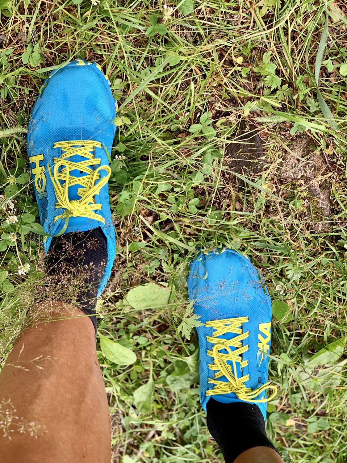 Mina Evo Jaws är faktiskt de lättaste springskor jag äger, enligt min våg så väger skorna 194 gram vardera. Lätta och fina pjäser alltså. Jag kände direkt att detta var en sko som jag gillar. Tidigare har min favoritsko på stigar varit Inov8 X-talon 212 och jag upplevde faktiskt Evo Jaws som en ganska lik sko. Greppet var bra, dom kändes snabba och känslan var grym. Ungefär det jag vill ha på en sko i terräng. När det kommer till asfalt och grus har jag kommit fram till att jag vill ha dämpade skor. I skogen vill jag helst springa med skor som just Evo Jaws, som inte har speciellt mycket dämpning. Så det var ett lyckofullt pass idag med den galet härliga känslan av frihet under fötterna.