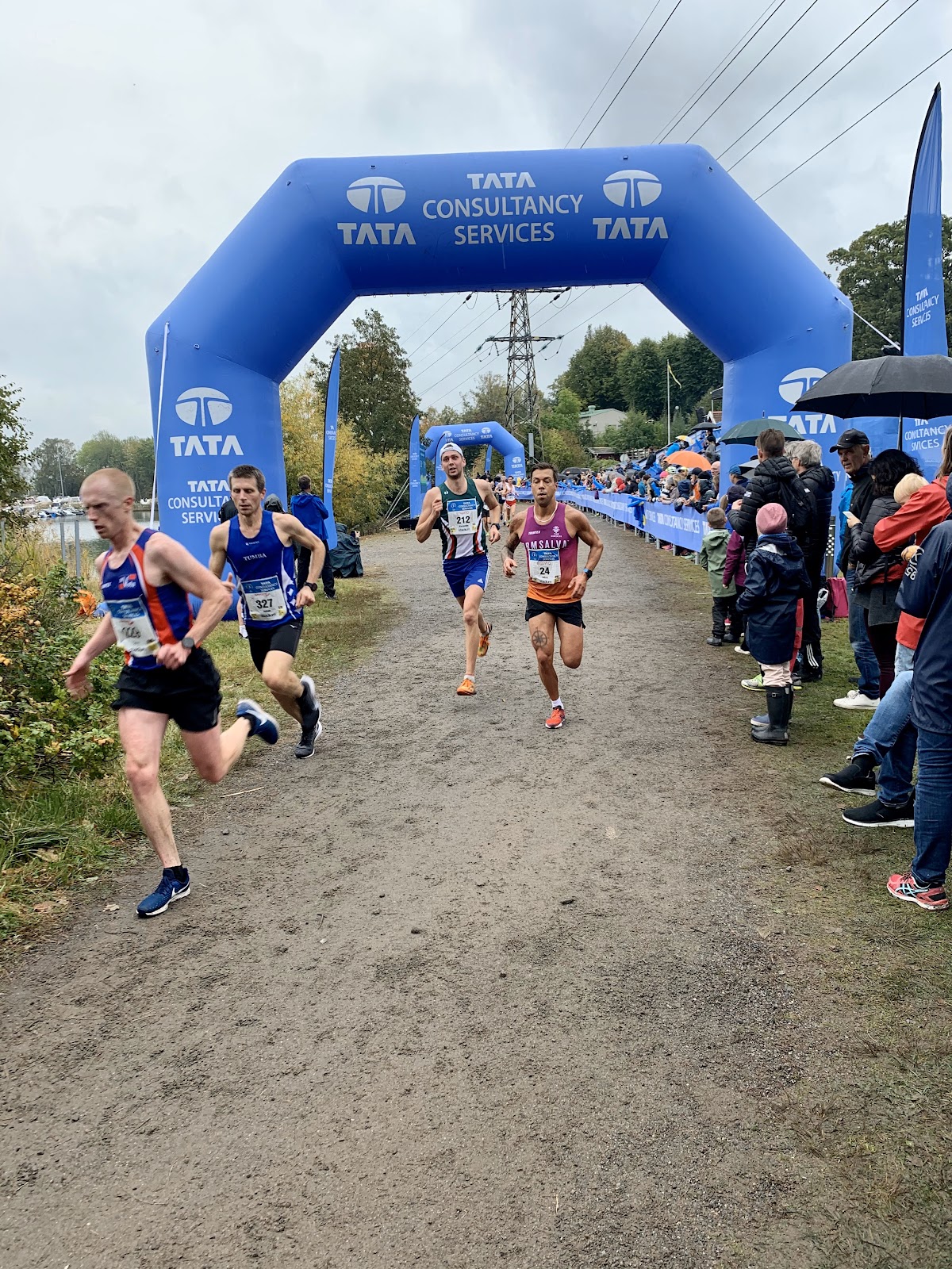 Jag startade i ett lagom tempo och tyckte det kändes lätt i 3-4 kilometer ungefär. Sedan började det bli slitsamt. Jag vrickade till foten lätt vid 6-7 kilometer och tänkte att detta inte kommer gå bra. Vid passeringen efter drygt 7 kilometer där Amanda stod första gången så låg jag cirka 30 sekunder före fjolårets placering, men jag kände mig seg och hade bara typ 170-173 i puls. Bet ihop och passerade första milen på 36,26 (36,51 förra året). Försökte bara intala mig själv hela tiden att skita i alla andra och att hitta ett bra driv i löpningen.