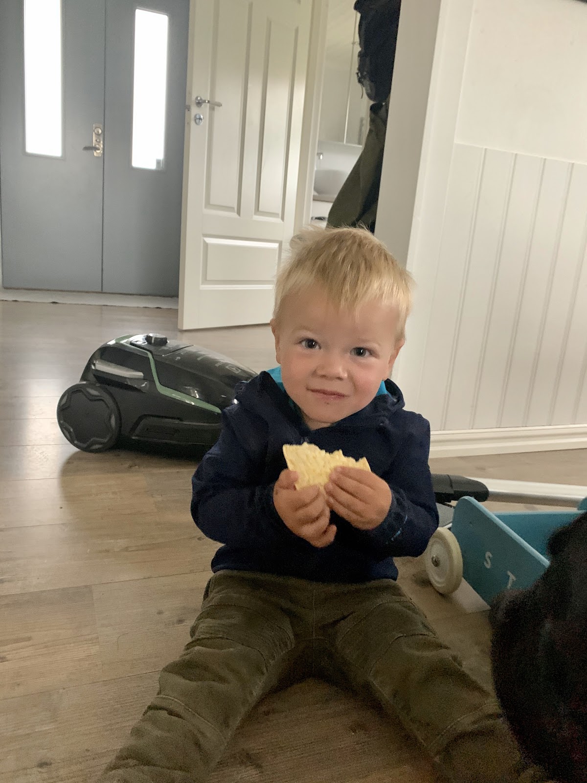 Två bilder från morgonen med junior. Det blir några bilder på honom, jag vet. Det får ni leva med.