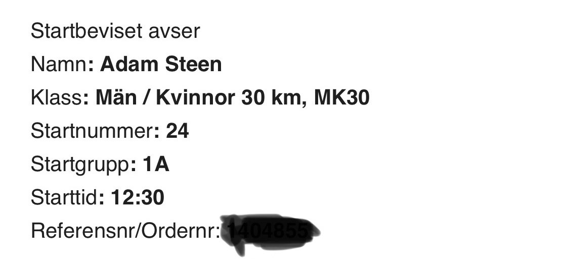 Igår fick jag startbeviset till Lidingöloppet. Startnummer 24 har jag, så det verkar inte som att man har siffran från förra årets placering. Då kom ju jag 91:a på 1,57,40. Hoppas jag kan slå den tiden i år, placering bryr jag mig inte om, även om topp-100 är roligt.