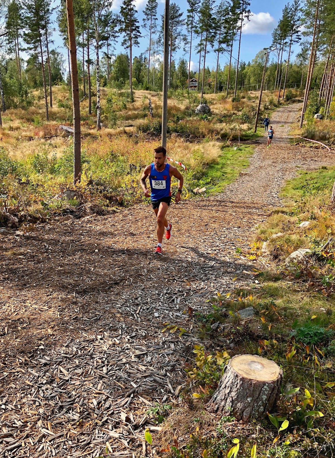 De flesta tre kilometrarna på varvet är rätt tungsprungna både till terräng och underlag. Jag tänkte bara att rulla på i lagom takt, ”vila” uppför och släppa på utför. Räknade ut att jag kunde tappa två minuter på andra varvet och ändå slå fjolårets tid. Tyckte jag kände mig stabilt pigg, även om det såklart var jobbigt.
