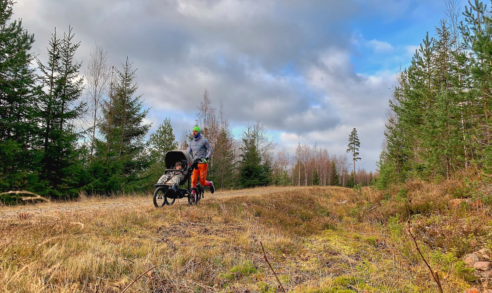 Jag kände mig så pass pigg och fräsch idag när jag kom hem att jag tog beslutet att träna. Det blev en lättare joggvända med barnvagnen. Alfons låg och sov nästan hela tiden och Boris trippade lätt bredvid.