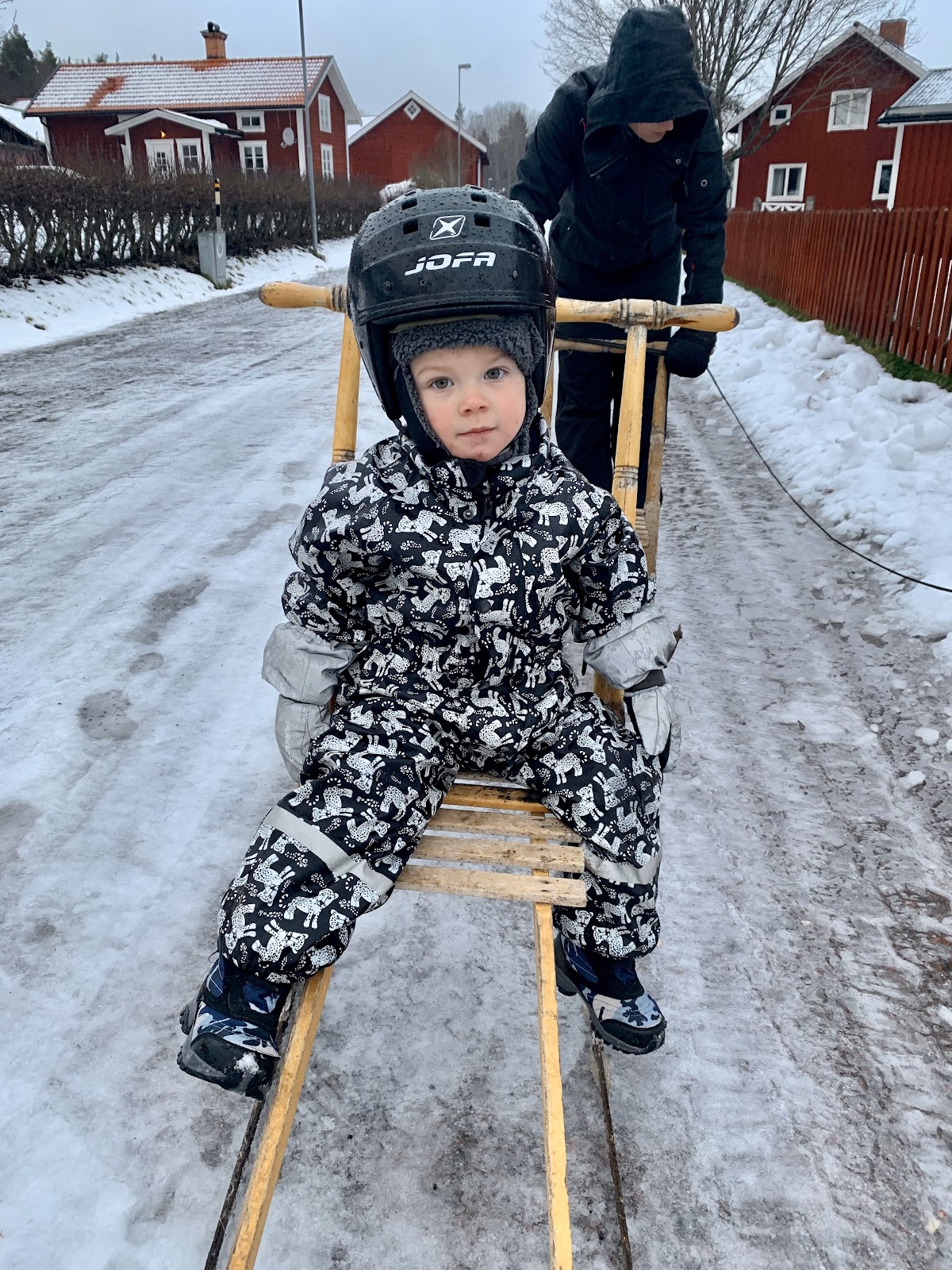 Igår bjöd vädret oss på en riktig fest. Under dagen låg temperaturen kring nollan och det regnade. Kul ändå så här i decembertider.. Vi tog ut sparkarna och åkte en vända med hela familjen. Alfons tyckte det var riktigt roligt, vilket var glädjande.