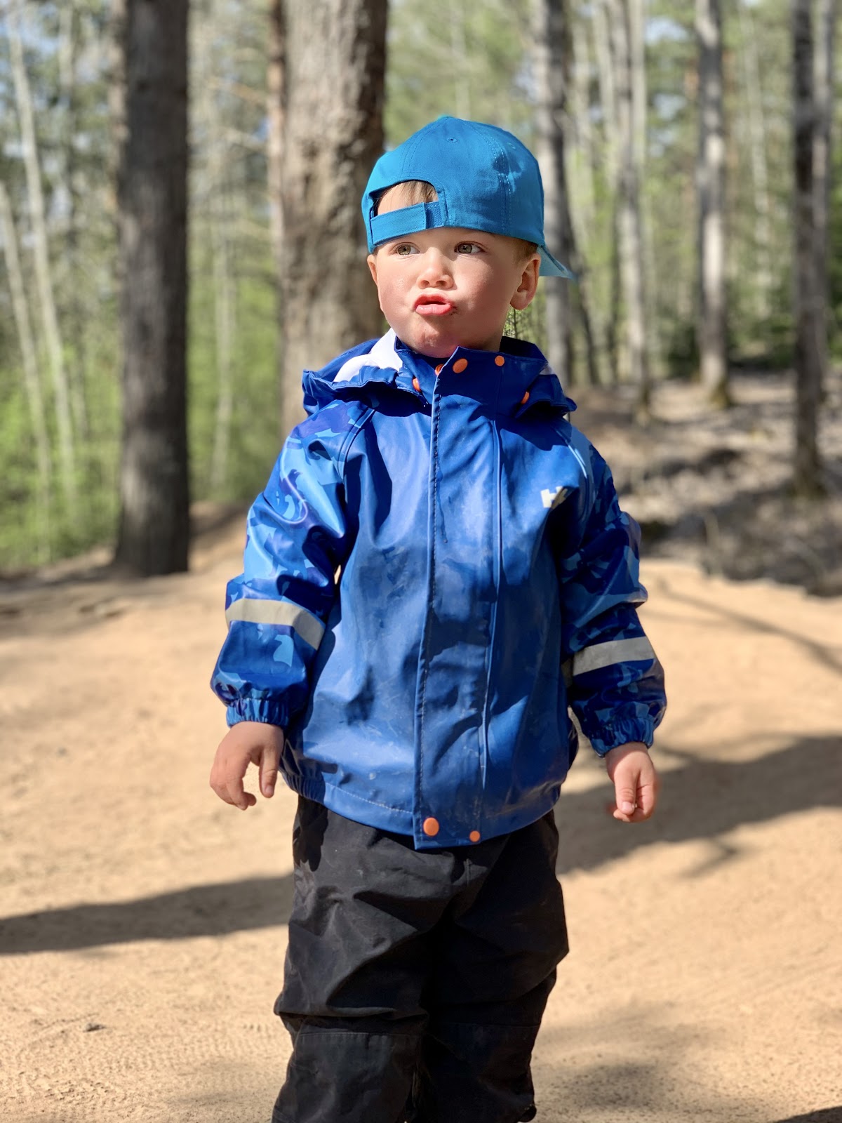 - Lätt frukost till Alfons, mat till Boris, klä på oss och bege oss mot bilen med hela gänget. Boris får kissa på vägen till bilen.
