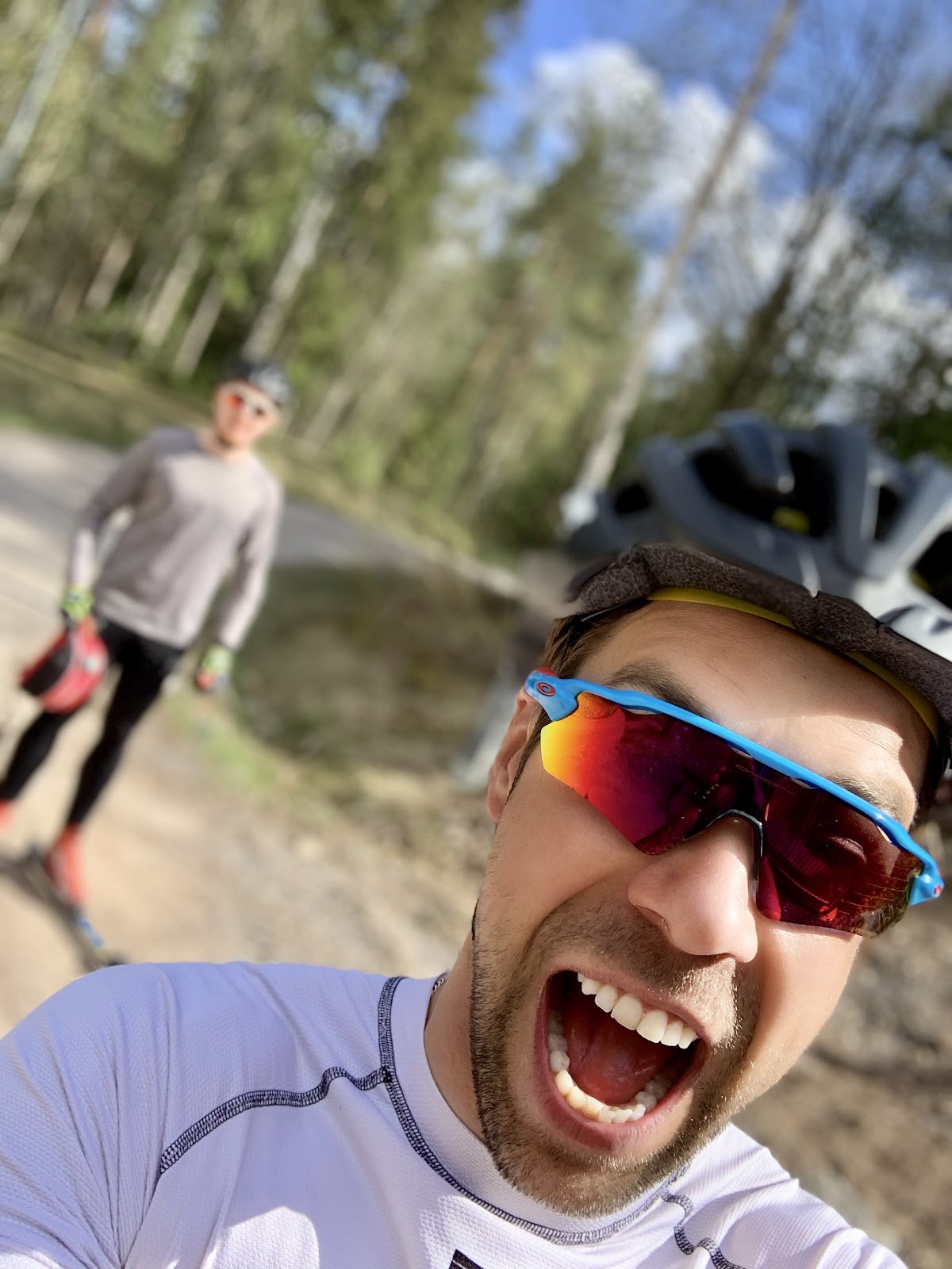 Jag hade äran att gästas av Adam Larsson under hela träningspasset idag. Skönt med sällskap för omväxlingens skull, trevligt sällskap dessutom. Vi höll till i Skräddarbacken under hela passet, förutom när vi åkte dit eller hem, såklart. Då det är löptävling imorgon så tog jag faktiskt sportdryck i vätskebältet, för att hålla energinivåerna uppe, tycker det funkar bra faktiskt och jag tränar nästan uteslutande med just sportdryck dagen innan tävling.