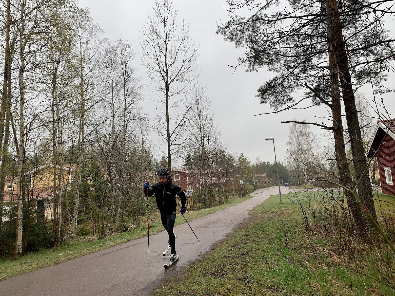 Eftermiddagens pass blev en blöt historia. Jag åkte på mina Elpex 4 till Skräddarbacken. Där snurrade jag omkring i cirka 1,30 timmar, innan jag sedan åkte tillbaka hem igen.