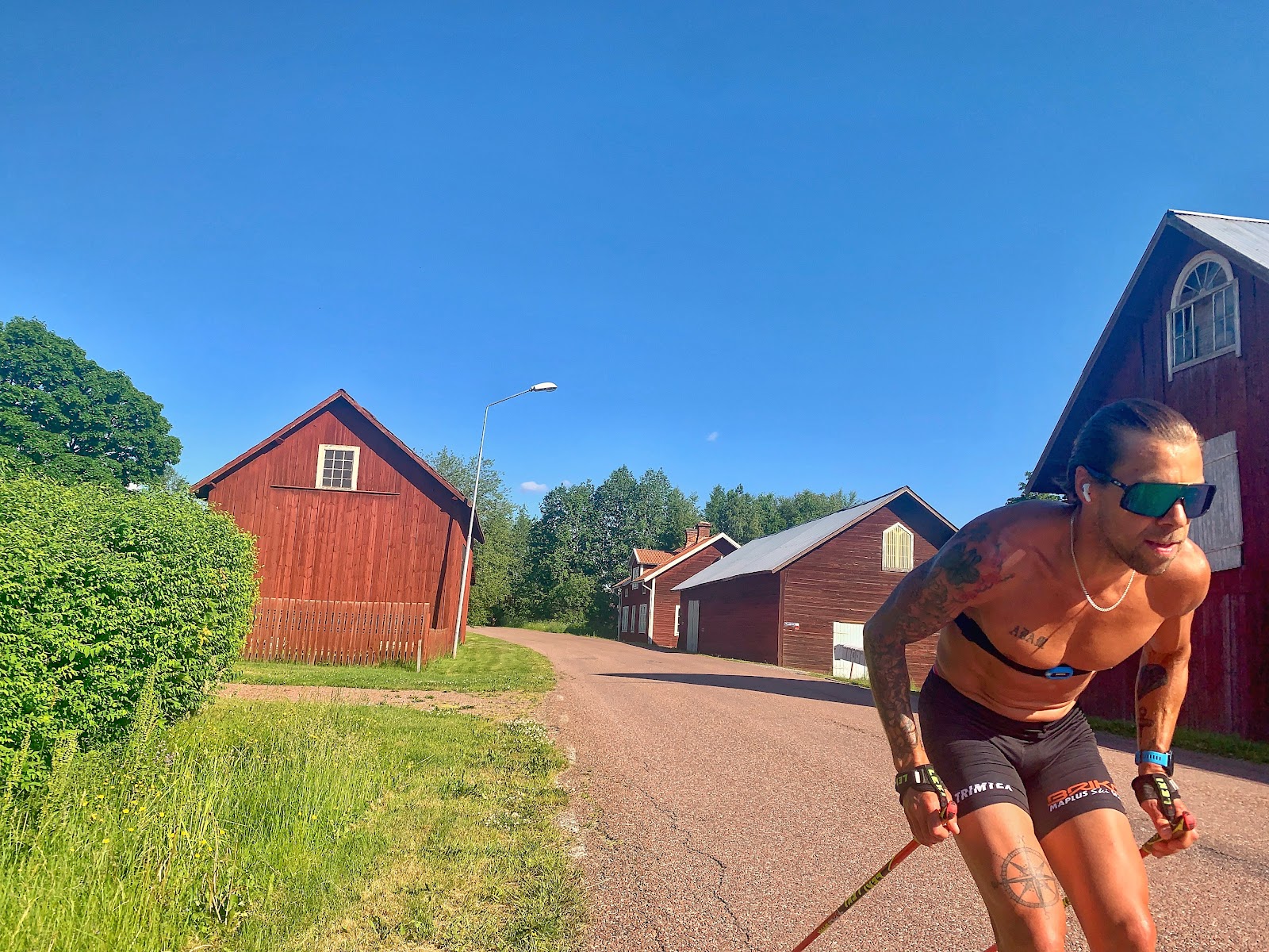 Drömväder med sol och i det närmaste helt vindstilla. Uppdragna korta tights och i övrigt inga kläder på mig. Då trivs jag som allra bäst. Jag åkte på mina Swenor 4 och körde vändan: Bullermyren - Norr Amsberg - Vallmora - Smedsbo - Aspeboda - Ornäs - Torsång - Islingby - Domnarvet - Kvarnsveden - Bullermyren. En nätt liten tur på tre timmar, 53,2 kilometer och 365 höjdmeter. Idag landade medelpulsen på 122, för er som för statistik. Under den sista timmen så körde jag 10 impulser på 12 stavtag vardera. En impuls är alltså samma sak som en spurt, en maxinsats alltså.