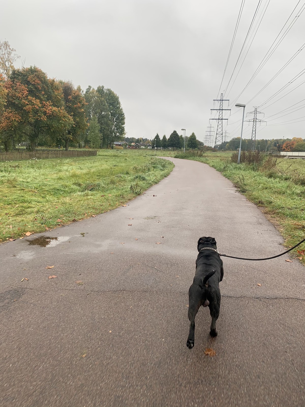 Såhär kan det se ut när Boris rastas under dagtid. Jag och min elev brukar cykla en vända med Boris under håltimmar. Det blir en win-win-situation för alla.