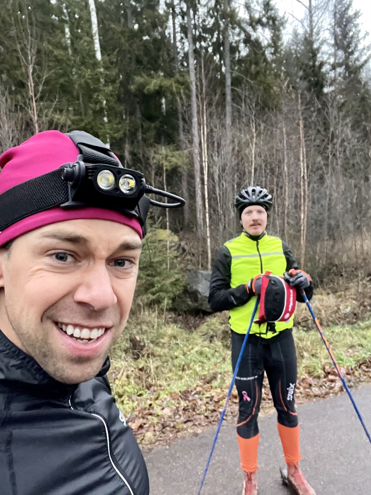 Jag körde på mina swenor 4, tekniken var klassisk, på de två timmarna hann vi några hundra meter längre än 30 kilometer och klarade således med nöd & näppe skamgränsen på 15 km/h i snittfart. Skönt att bara åka i två timmar, tänkte att den där extra halvtimmen eller timmen inte skulle ge mig något mer än irritation och uppgivenhet. Timmar har jag kört genom åren, så att dra ner en aning på dessa nu gör nog inte något.