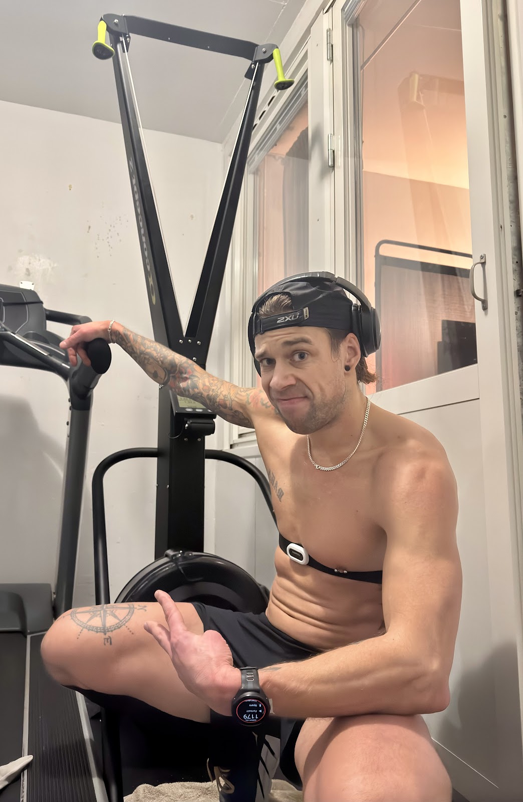 Skierg som första del och här varvade jag mellan längre-lugnare och kortare-hårdare.