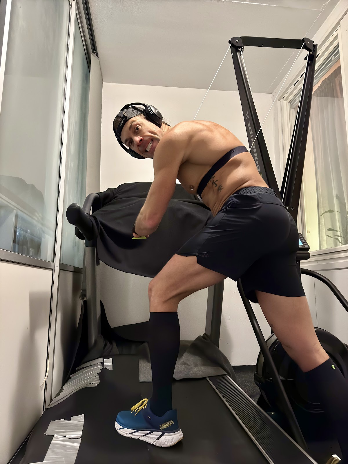 Till en början körde jag löpband, 45 minuter (9,6 kilometer) i ett svep utan stopp och 15 minuter per lutning 0%, 5% och 10%.