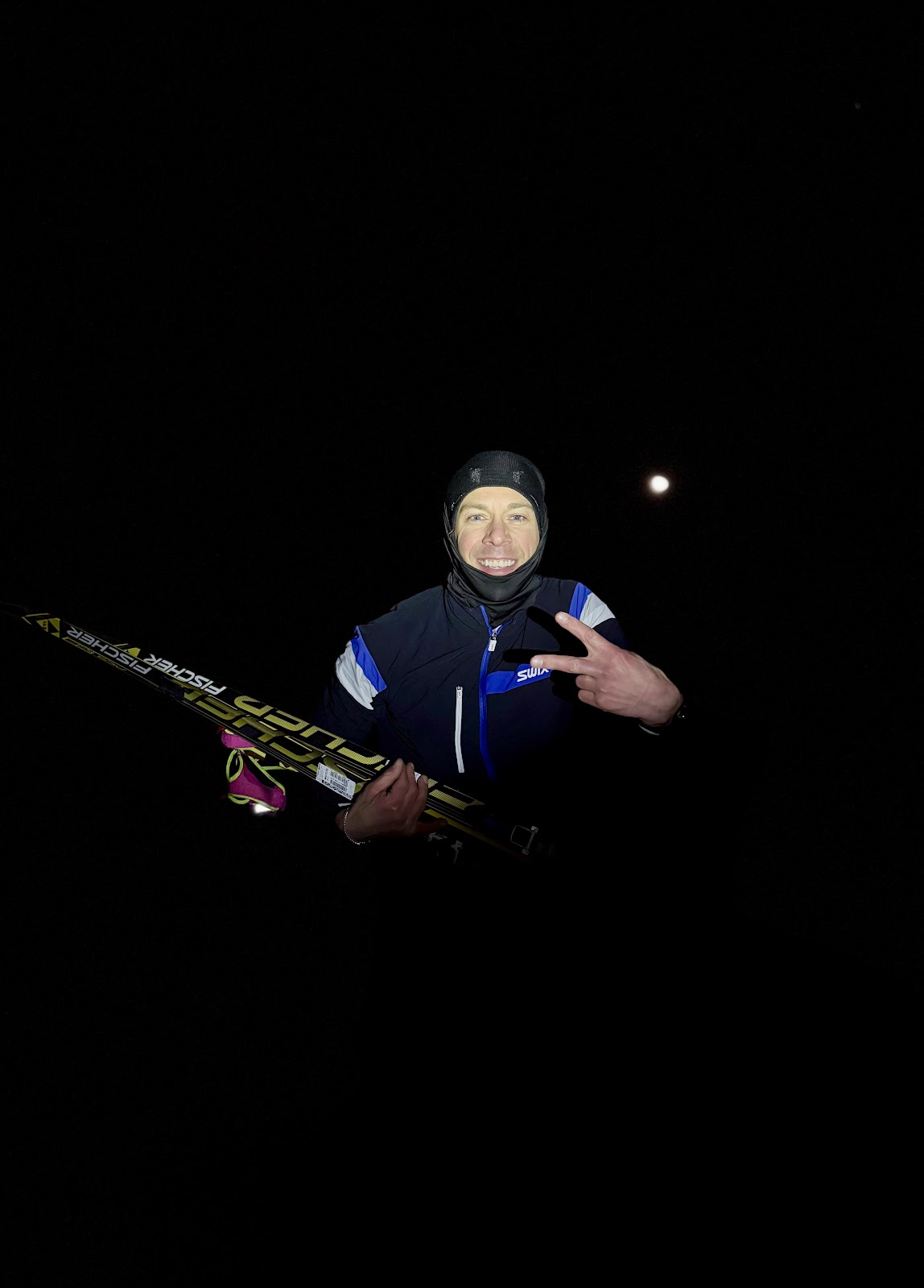 Idag har det blivit ett enkelt litet distanspass, stakning, i Bergebo. Jag hann åka 30 sekunder innan jag fick sällskap av Albin Berger, som då hade åkt i cirka 2,5 timmar redan (jag är tidigt ute som vanligt). Tänkte att jag kanske får sällskap i en halvtimme åtminstone, men det tog inte lång tid innan jag börjar höra han nämna ”90” och då förstod vi nog båda att vi skulle slå följe under resten av mitt pass!
