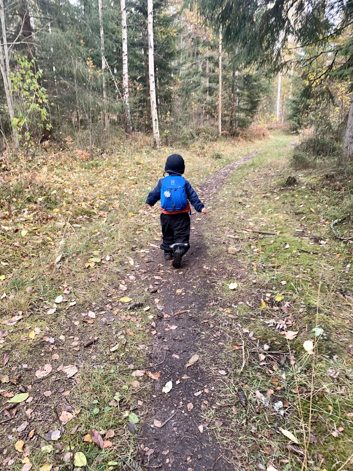 Vi hade en liten utflykt i skogen i lördags med de två vilddjuren här hemma. Alfons var väldigt duktig och gick själv i närmare två kilometer. Det var imponerande med de små benen.